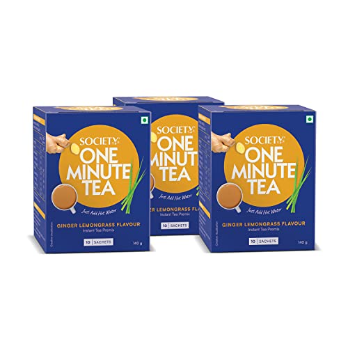 Society One Minute Tea | Ginger Lemongrass Flavour | Made with Lemongrass & Ginger | Flavoured Instant Tea | 14g X 10 Sachets (140g) | Pack of 3