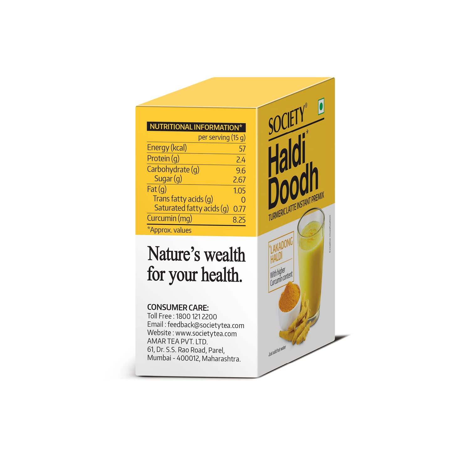 Society Tea Haldi Doodh | Turmeric Milk | Made with Lakadong Turmeric | Instant Haldi Doodh | 15g X 5 sachets | 75 g | Pack of 2