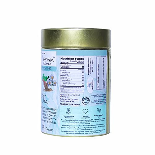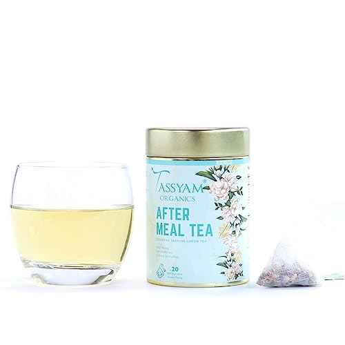 Tassyam Organics Teawery After Meal 20 Biodegradable Tea Bags | Green Tea Blend Plant Based Fabric Pyramid Teabags