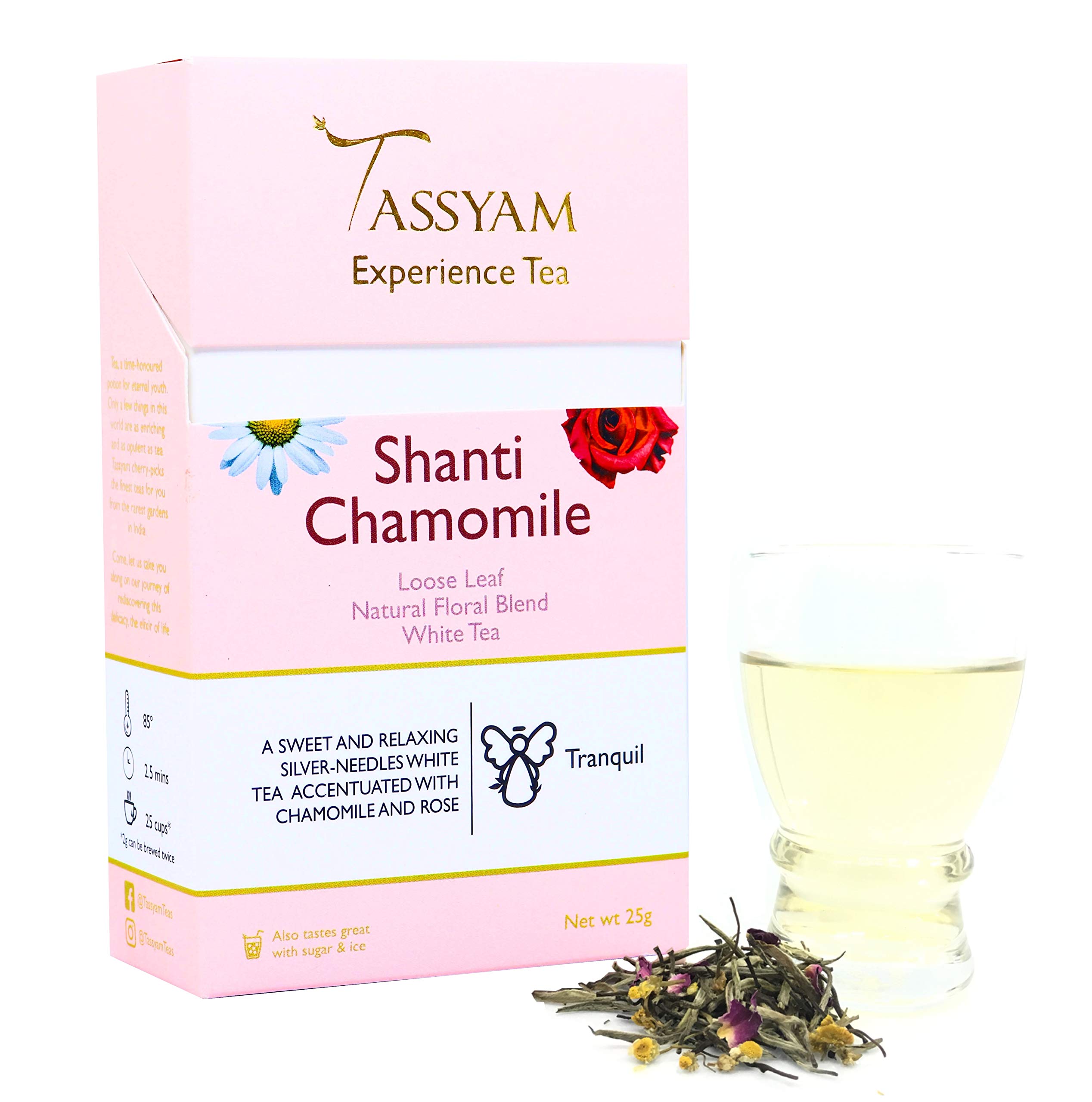 Tassyam Shanti Chamomile White Tea 25g | Luxury Box - Rose and Chamomile Blend - Silver Needles Loose Leaf