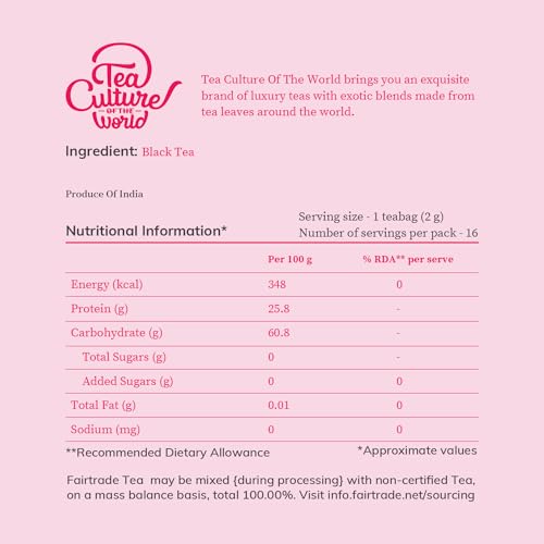 HomeGroceryBeveragesTeaTea Culture of The World English Breakfast Tea | Premium Black Tea English Classic Range Medium Strength and Rich Flavour | Black Teabags 16 Count
