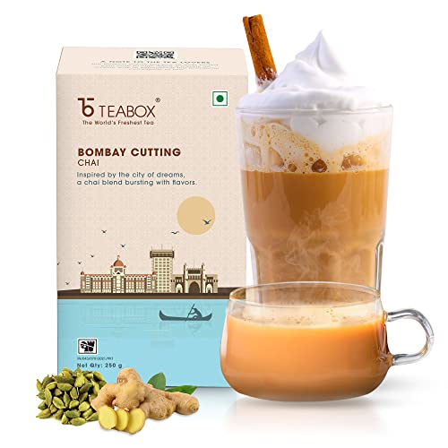 Teabox Bombay Cutting Chai | Inspired By The Bustling City | Blended With Natural Cardamom Ginger & Fennel 250 GramsTake a trip to the heart of all things India with a delectable cup of this tea blend. The choicest of spices including warm cardamom sharp ginger and exotic fennel seeds are blended to perfection with fresh strong Assam CTC. With some milk and sugar this makes the ideal cup of indulgence whenever the mood suits you.Teabox Fresh & Strong Assam Masala Chai | Strong Assam CTC enriched with Cardamom Cinnamon Clove Ginger Black Pepper | 250 GramsTeabox Assam Masala Chai blend is made with premium Assam CTC black tea mixed with dry spices that include cinnamon cardamom ginger cloves and black pepper corns. This spiced chai blend has been expertly put together by our in-house tea masters for a flavorful cup that envelopes the decadent flavor of Assam tea in the warmth of exotic spices.