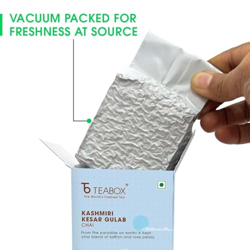HomeGroceryBeveragesTeaTeabox Kashmiri Kesar Gulab Chai | From The Everlasting Beauty Of The Kashmir Valley | Mixed With The World's Rarest Saffron & Light Scented Roses | 250 Grams