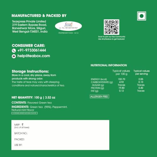 Teabox Peppermint Herbal Tea Loose Leaves 100 Grams | Mint Green Tea For Feeling Refreshed | Made with 100% Whole Leaf & Natural Flavors Brew Hot or Cold