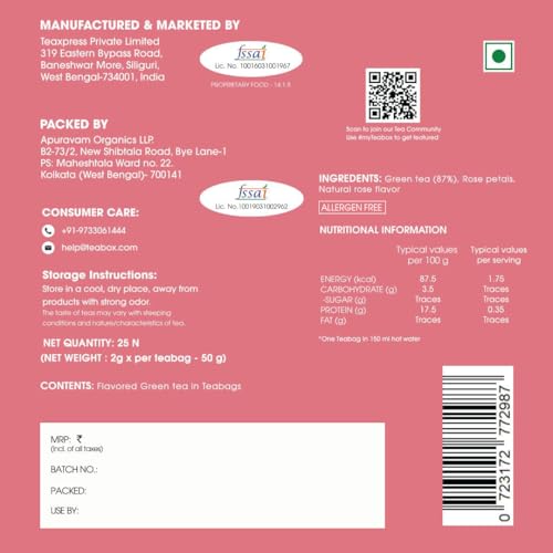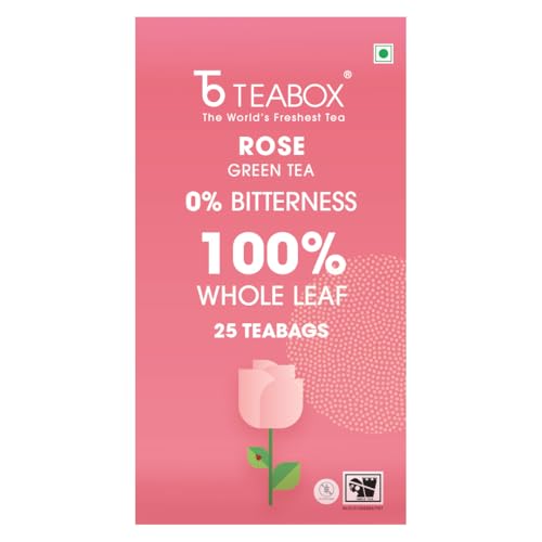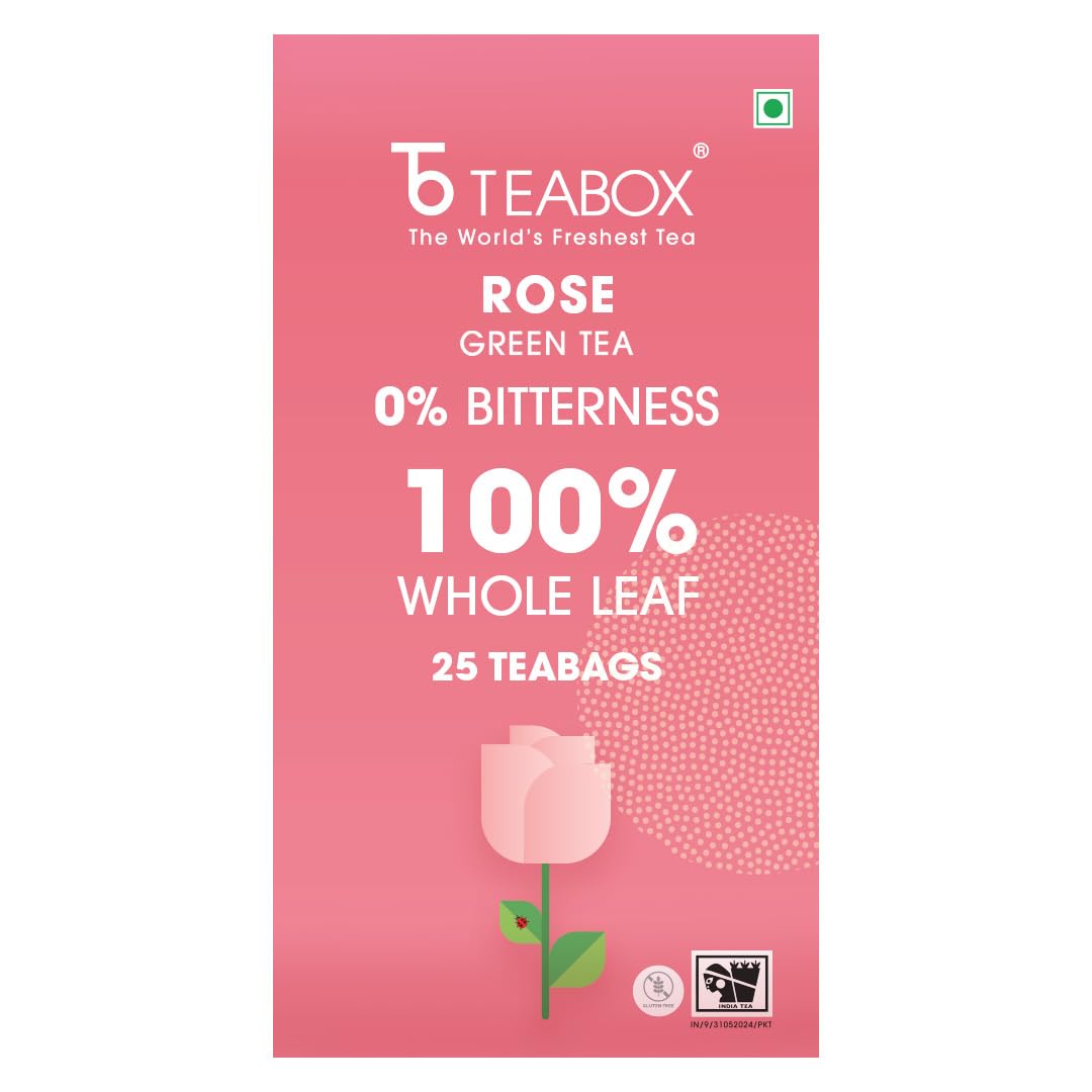 Teabox Rose Green Tea Bags 25 Pieces | Refreshing & Aromatic | Made with 100% Whole Leaf & Natural Rose Petals