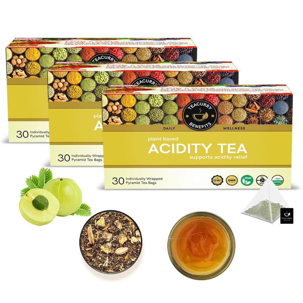 TEACURRY Acidity Tea (3 Month Pack | 90 Tea Bags) - Supports Stomach Acidity & Digestion Naturally | Organic Tea With - Anantmool, Guduchi, Bala, coriander seed