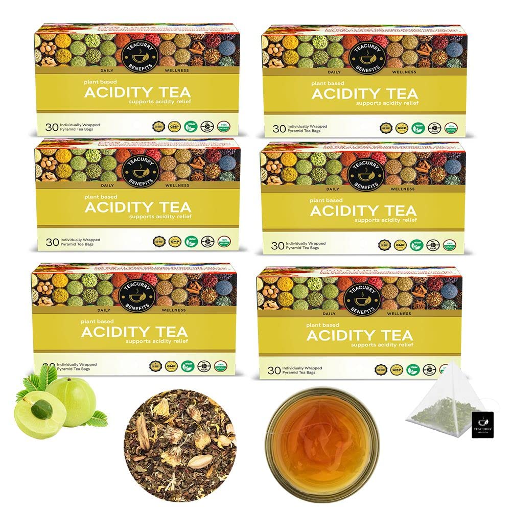 TEACURRY Acidity Tea (6 Month Pack, 180 Tea Bags) - Supports Stomach Acidity & Digestion Naturally | Organic Tea With - Anantmool, Guduchi, Bala, coriander seed