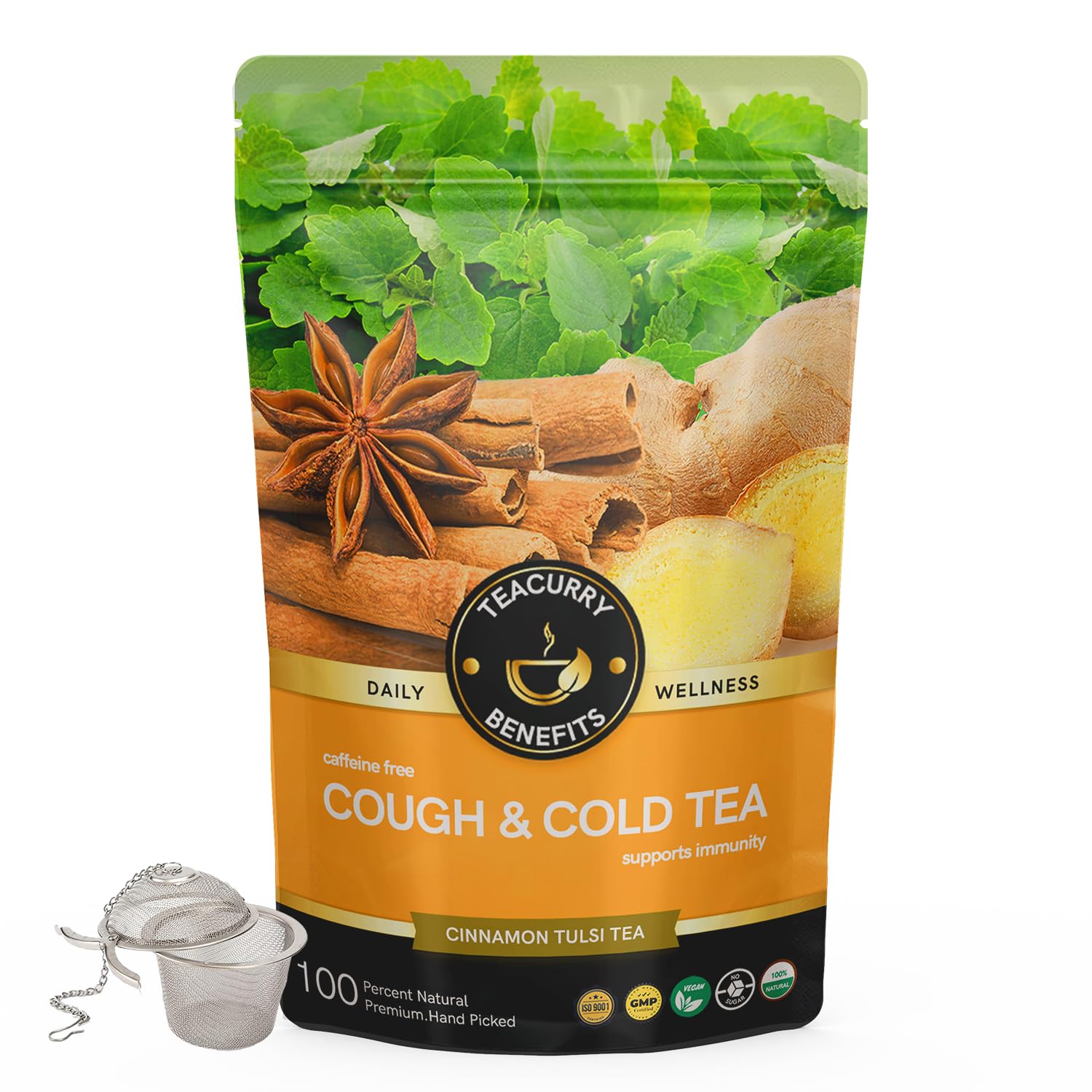 TEACURRY Cough and Cold Tea (1 Month Pack, 100 Grams Loose) + Infuser - Helps with Sore Throat, Congestion & Runny Nose - Cough and Cold Relief Pack