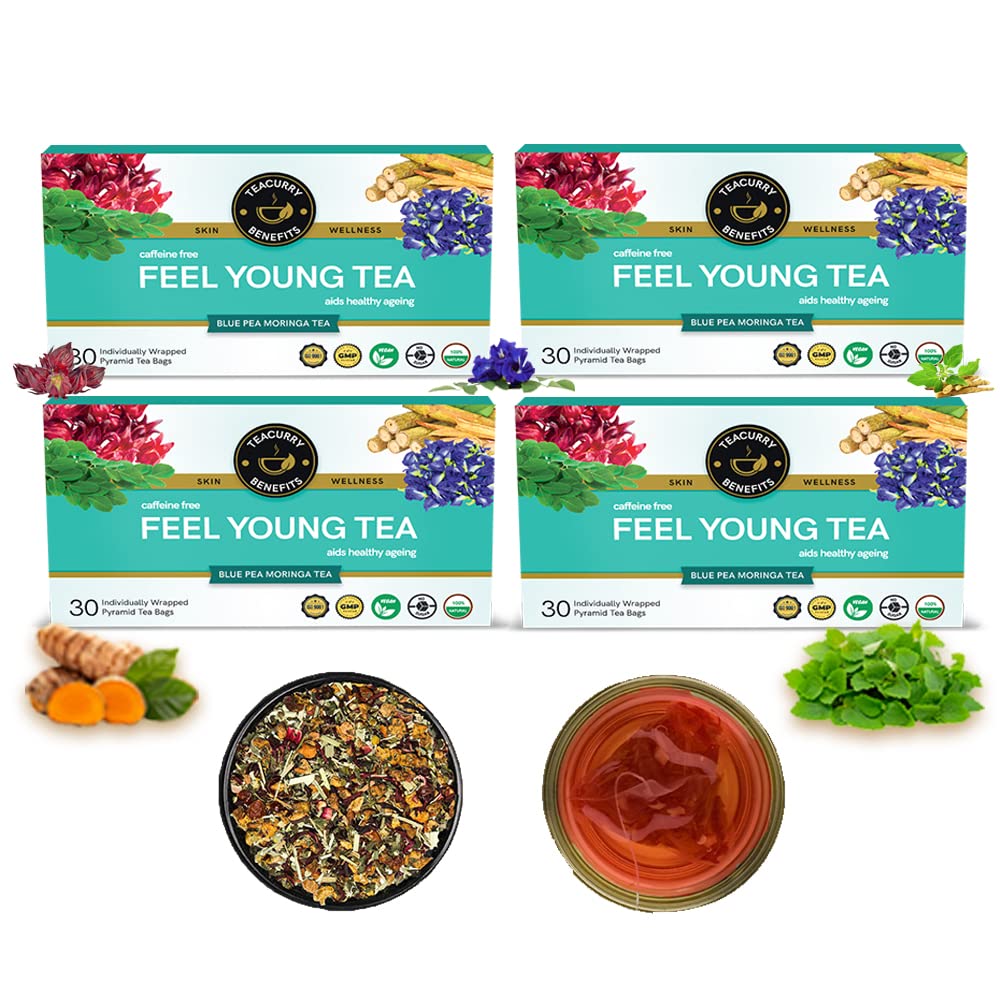 TEACURRY Anti Ageing Tea (4 Months Pack 120 Tea Bags) - Helps in Wrinkles Skin Glow Hair Care Premature Ageing - Anti Ageing Tea for Women - Herbal Tea for Skin - Feel Young Tea