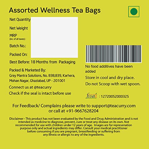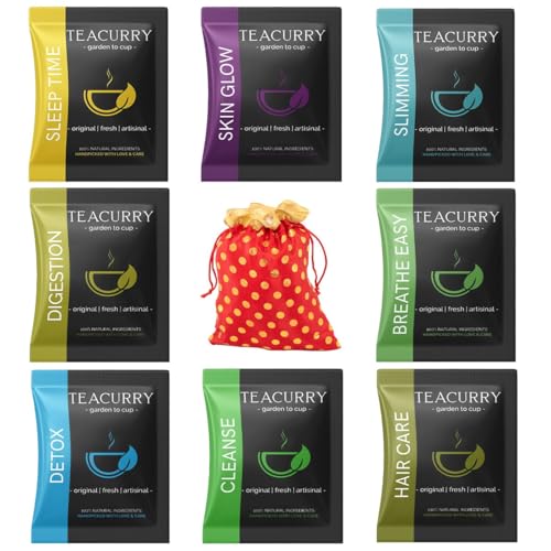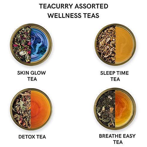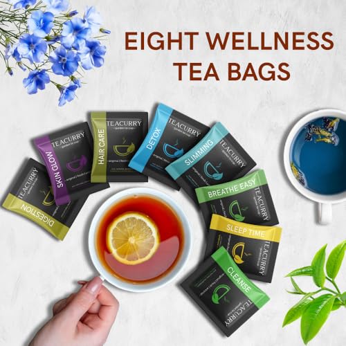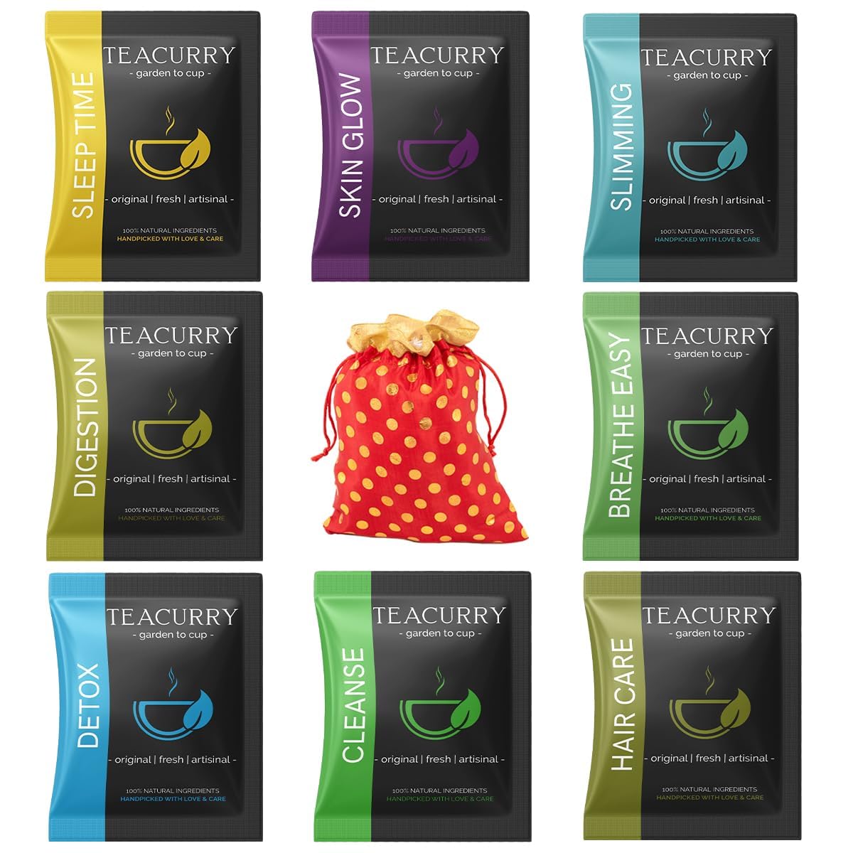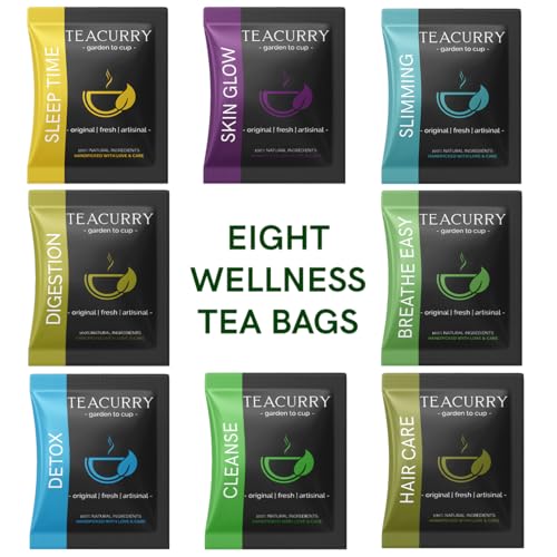 Teacurry Assorted Wellness Tea Bags - 8 Flavors | 8 Tea Bags | For Sleep Digestion Detox and Weight Loss | Assorted Tea Bags | Assorted Tea | Assorted Tea Gift | Assorted Tea Flavours