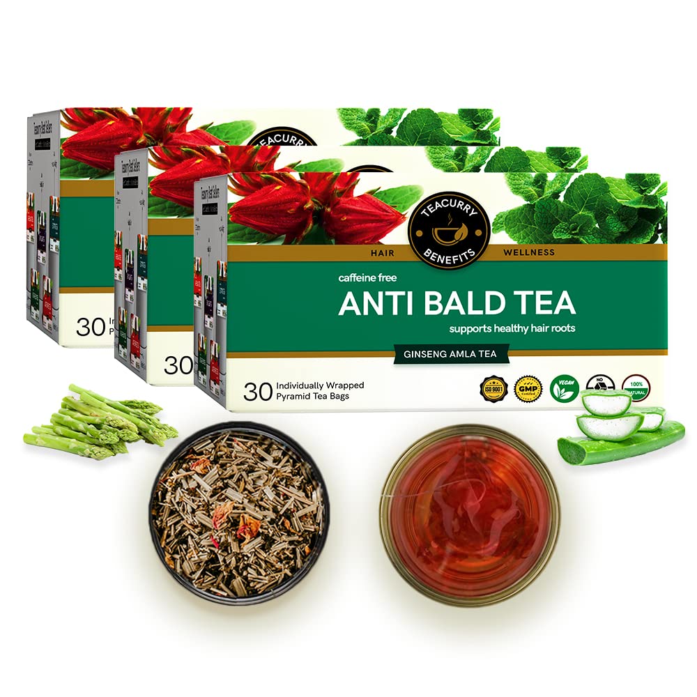 • Benefits - Teacurry Bald Tea is a unique mixture of Ayurvedic herbs to help with growing new healthy hair in different stages of less hair pattern