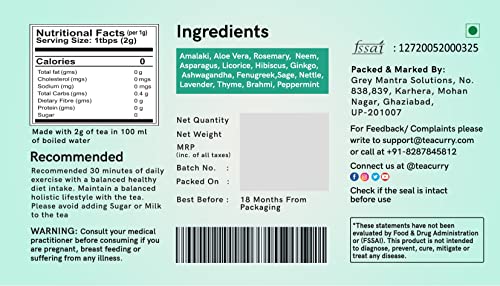 • Recommended Daily Dose - Consuming 2 grams of 1 tea bag a day (in 200 ml water after meal) of Teacurry Bald Tea will help in hair wellness and hair pattern. Consistency is key so please don't skip days. Mixing with other brands is not advisable.