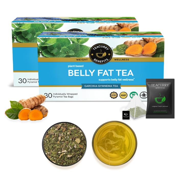 TEACURRY Belly Fat Tea 60 Tea Bags (2 Months Pack) - Helps with Belly Fat Water Weight Bloating | Weight Management