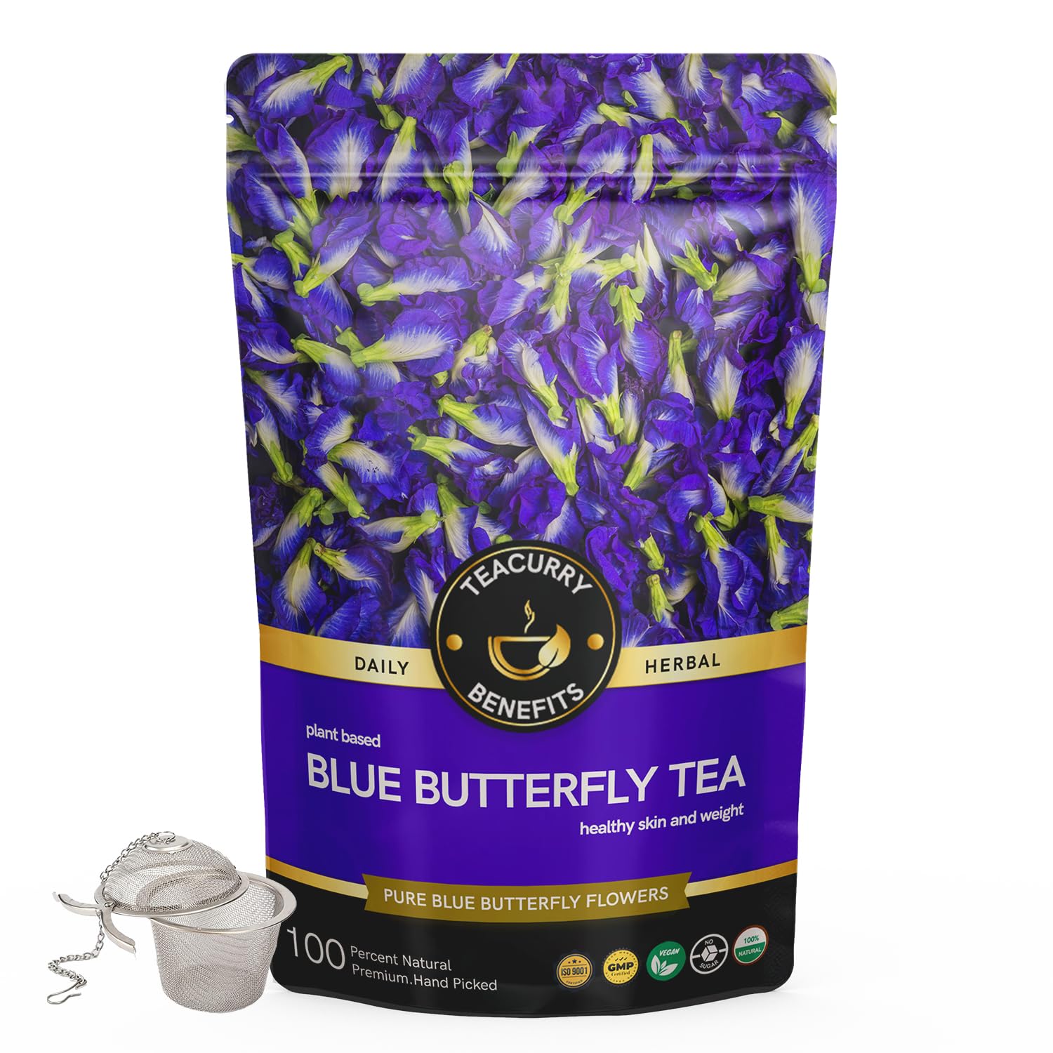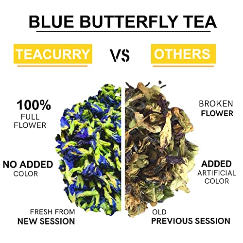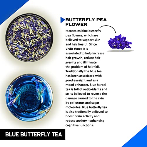 TEACURRY Blue Butterfly Tea (1 Month Pack 100 Grams Loose) + Infuser - Helps in Skin Glow Hair Growth Eyesight Mood Enhance - Butterfly Blue Pea Tea - Blue Butterfly Tea