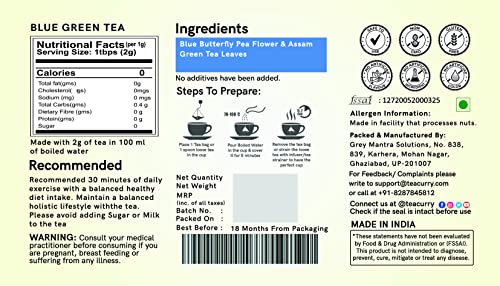 HomeGroceryBeveragesTeaTEACURRY Blue Pea Flower Green Tea - 75 Gms Loose Tea of Blue Pea Green Tea | Helps with Weight Loss Skin Glow Hair Care Brain Health | Butterfly Pea Green Tea