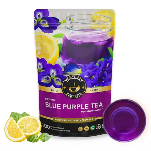 Teacurry Blue Purple Tea (100 gram) Supports Skin Wellness and Hair Strength| | Flower Based Caffeine Free Herbal Tea