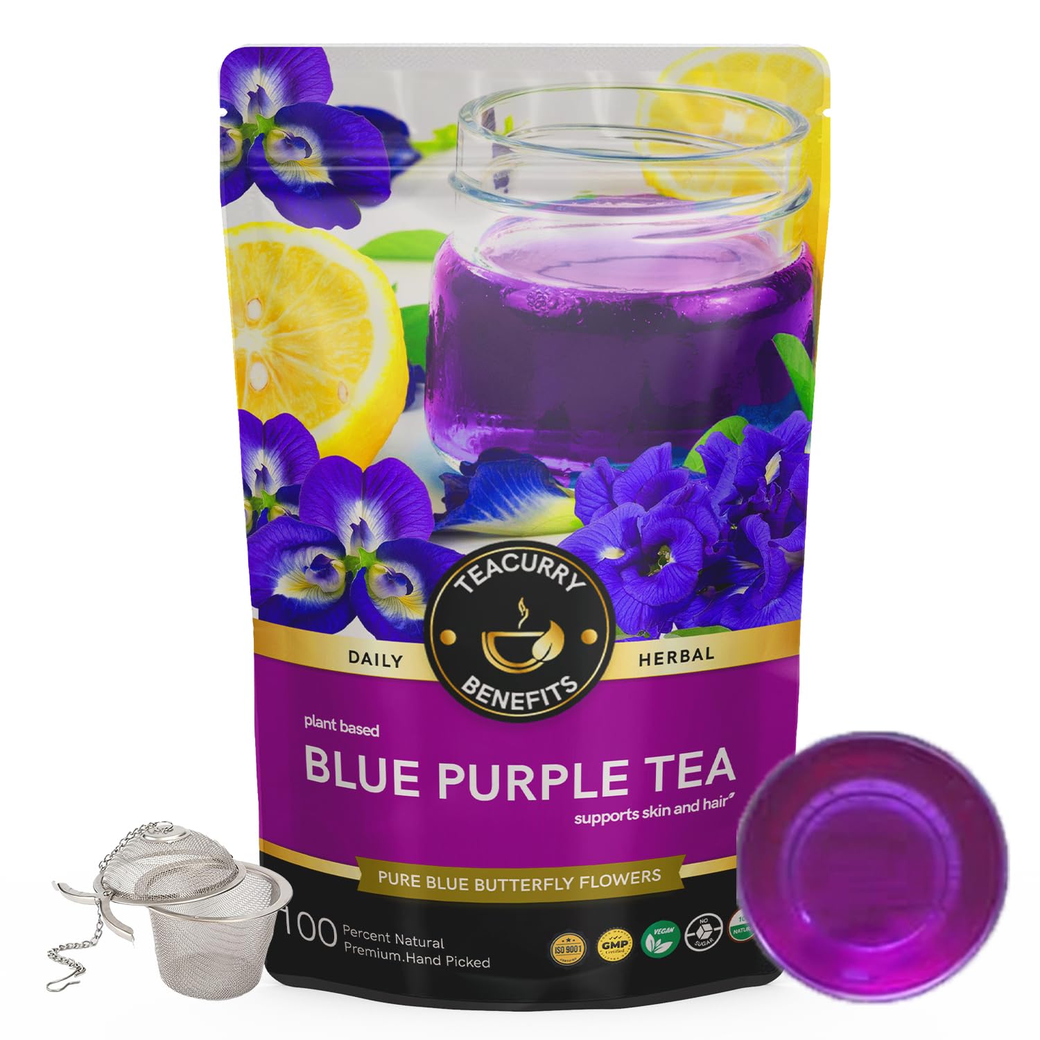 Teacurry Blue Purple Tea (200 gram+infuser) Supports Skin Wellness and Hair Strength| | Flower Based Caffeine Free Herbal Tea