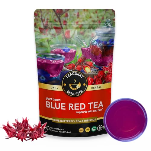 Teacurry Blue Red Tea is a vibrant blend of blue pea flower and rosella hibiscus offering a balance of calming sweetness and tart refreshment. Packed with cleanse benefits it promotes glowing skin enhance body function and supports overall well-being.