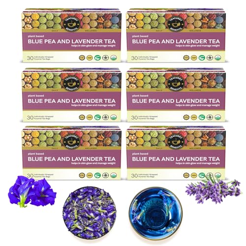Teacurry Butterfly Pea Lavender Tea (6 month Pack 180 Tea Bags) - Enhances Sleep & Improves Skin Glow - Blue Purple Tea for Hair and Skin