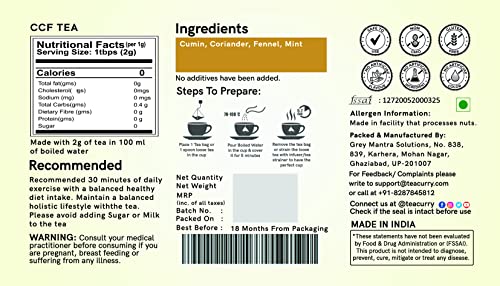 TEACURRY Ccf Tea (30 Teabags 1 Month Pack)-Natural Ginger Tea For Digestive Wellness|Herbal Tisane|Caffeine Free50 Grams