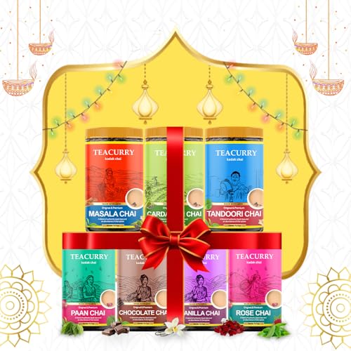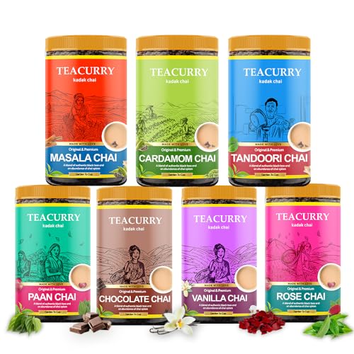 Teacurry Chai Combo of 7 - (700 gms = 7x100 gm Each) - Masala Chai Cardamom Chai Tandoori Chai Paan Chai Chocolate Chai Vanilla Chai Rose Chai - Natural Flavor Tasting Chai