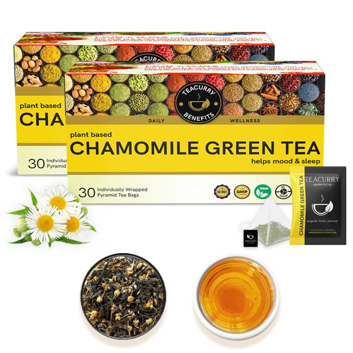 TEACURRY Chamomile Green Tea (60 Tea Bags) - Helps with Sleep, Relaxation - Chamomile Green Tea Bags | Chamomile Green Tea Leaves