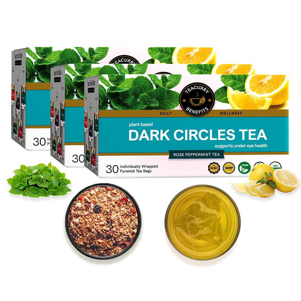• 100% Natural Ingredients Teacurry Dark Circles Tea is suitable for all age groups and all skin types. Teacurry Dark Circles Tea is a unique blend of Turmeric Lemon Peels Rose Peppermint Amla Licorice Moringa Green Tea Gotu Kola and . All these provide th