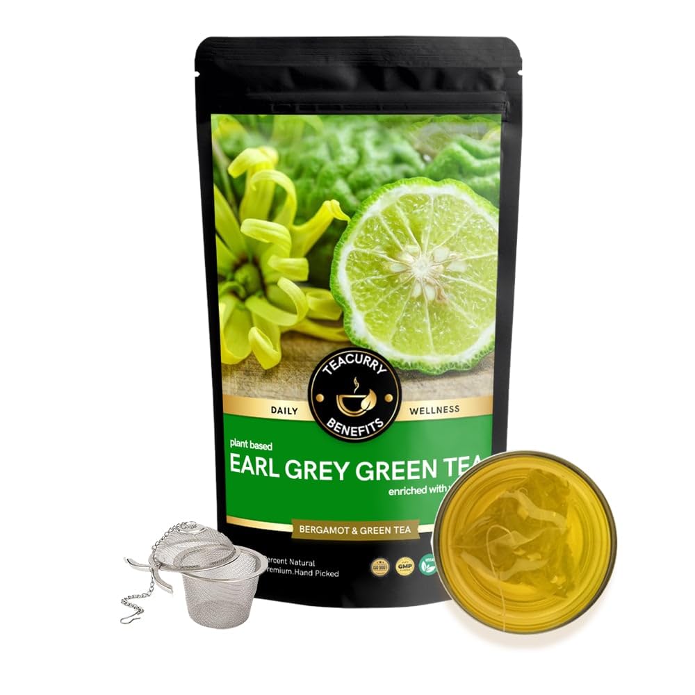 Teacurry Earl Grey Green Tea - English Breakfast with Natural Bergamot | Premium Green Tea Leaves for weight management & Digestive Health (100 Gram Loose + Infuser)