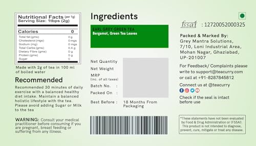 Teacurry Earl Grey Green Tea - English Breakfast with Natural Bergamot | Premium Green Tea Leaves for weight management & Digestive Health ((3 Month Pack 90 Tea Bags))