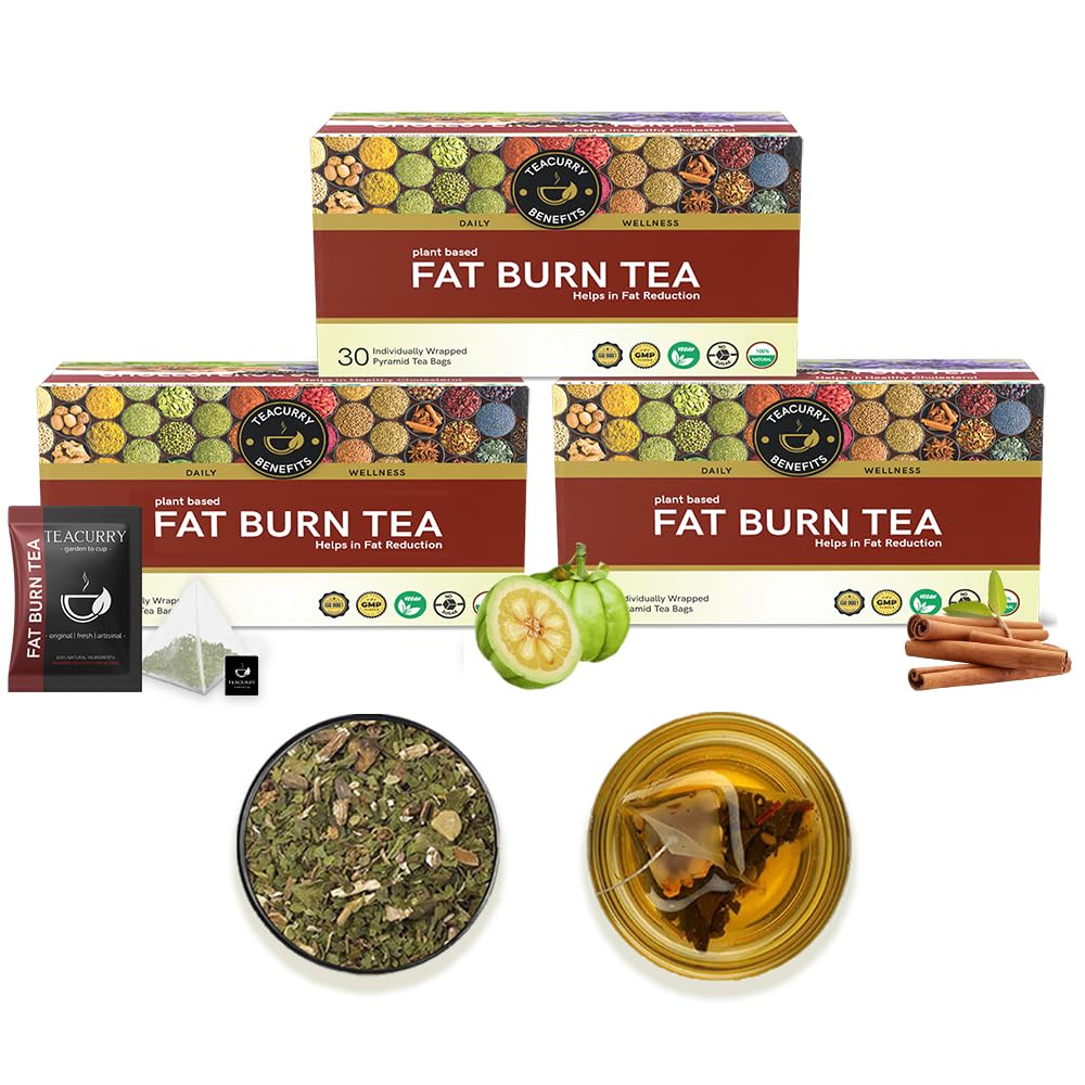 Teacurry Fat Burn Tea (90 Tea Bags 3 Month Pack) - Helps to Manage Fat Get Toned & Slimmer Body | Natural Herbal Tea