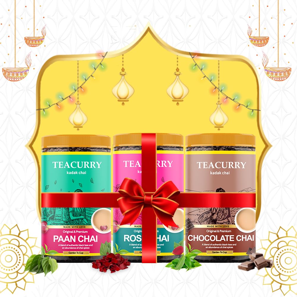 TEACURRY Chai Combo Pack (300 Gms = 3 x 100 Grams) - Paan Chai, Rose Chai, and Chocolate Chai - Authentic Flavor Tasting Chai