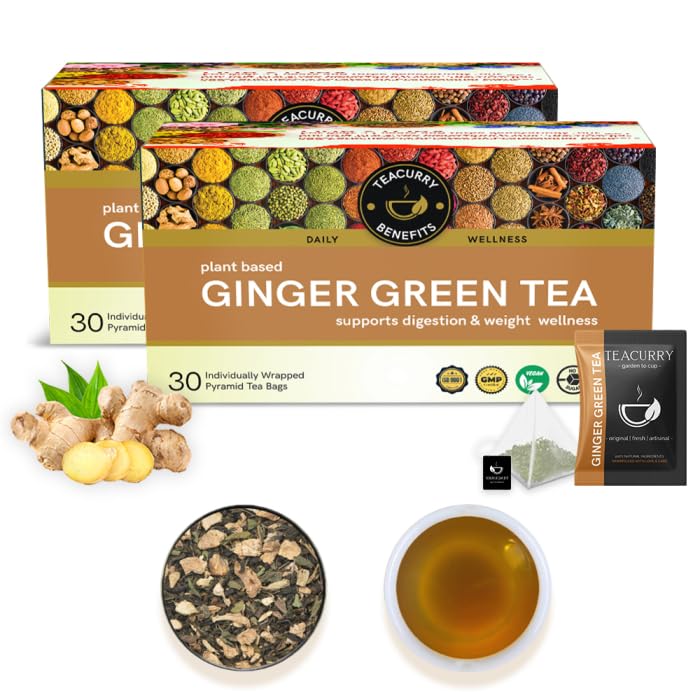 • Delicious Ginger Green Tea - TeaCurry Ginger Green Tea is designed to fuel your body with ingredients that help support not only everyday needs but also illness based needs. Each soothing tea contains a unique blend of ginger pieces and green tea leaves d