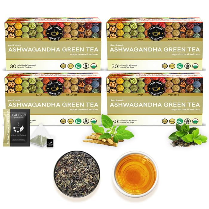 TEACURRY Ashwagandha Green Tea (4Months pack, 120 Tea Bags) | Ashwagandha Green Tea for Weight Loss, Sugar Control, Stress, Cholesterol | 100% Natural Herbal Tea for Sugar Control