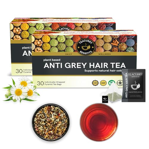 Teacurry Grey Hair Tea - (2 Month Pack 60 Tea Bags) Helps to regain natural hair color Boost melanin production & Lower the hair fall | 100% Natural