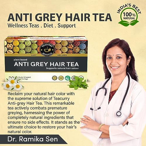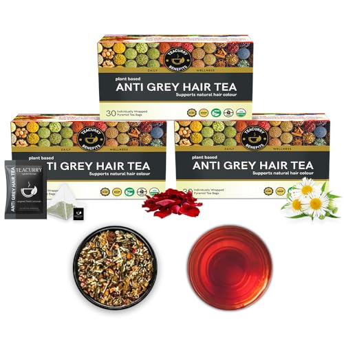 Teacurry Grey Hair Tea - (3 Month Pack 90 Tea Bags) Helps to regain natural hair color Boost melanin production & Lower the hair fall | 100% Natural