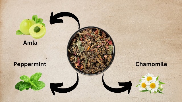 100% Natural Ingredients Teacurry Hair tea is a unique blend ofTurmeric Curcumin Longa sourced from Andhra Pradeshdried chamomile flowers from Himachal PradeshRoselle Hibiscus from MysoreGlycyrrhiza glabra Liquorice from PunjabKrishna Tulsi from SasangirP
