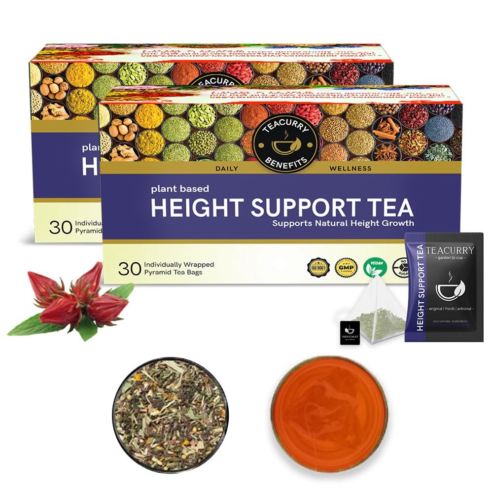 Teacurry Height Support Tea (60 Tea Bags) - Helps with Height Growth Taller Look and Confident Naturally | Chemical Free