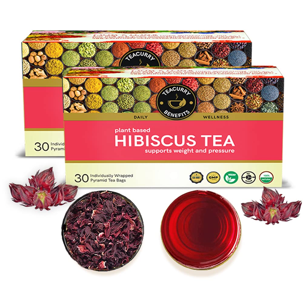 TEACURRY Hibiscus Tea (60 Tea Bags), Helps with Heart Health, boosts liver health | Hibiscus Tea For Skin | Hibiscus Tea Petals | Hibiscus Tea leaves |Hibiscus Flower Tea
