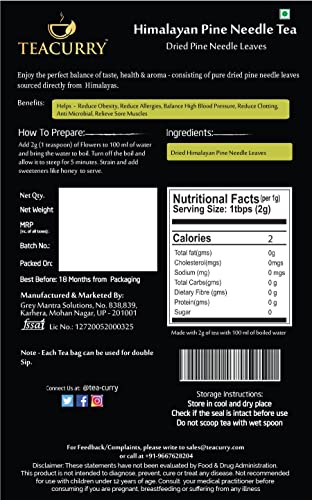 HomeGroceryBeveragesTeaTEACURRY Himalayan Pine Needle Tea - (500 Grams 1000 Cups) Helps with Hair Skin Eyes Varicose & Obesity - Pine Needle From Portugal