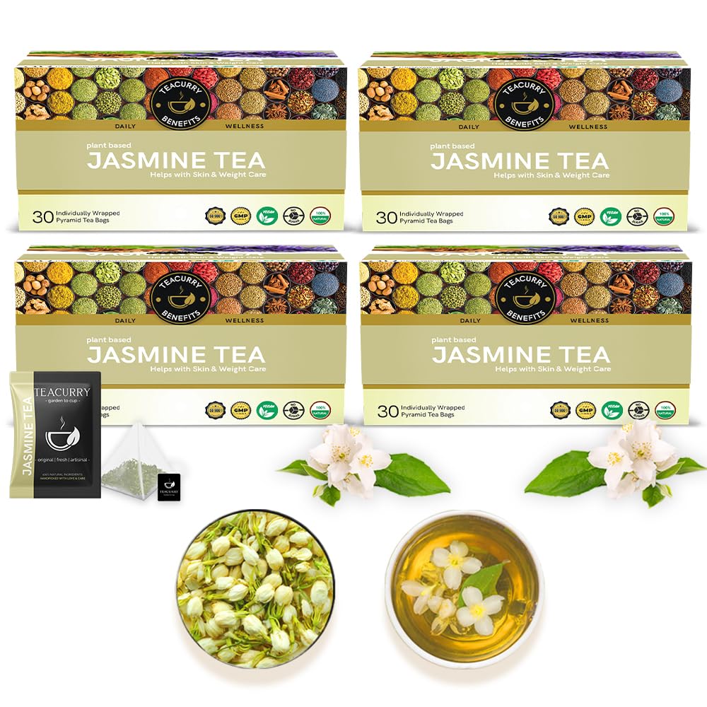 TEACURRY Jasmine Flower Tea (120 Tea Bags, 2 Months Pack) - Jasmine Flower Tea Helps Weight Management, Protects Heart, Relieves Stress, Boosts immunity and Improves Skin Glow - Jasmine Tea