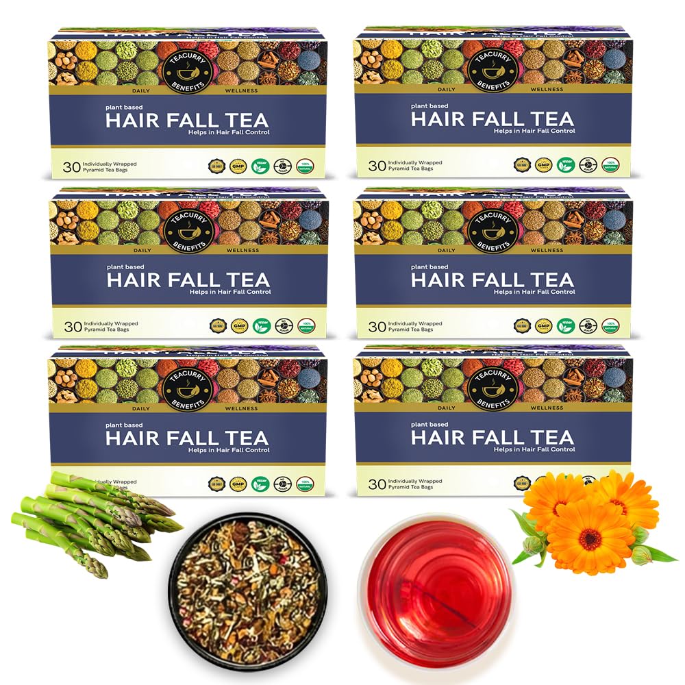 Teacurry Less Hair Tea (180 Tea Bags 6 Month Pack) - Helps to Reduce Less Hair Thinning | Hair Wellness Tea