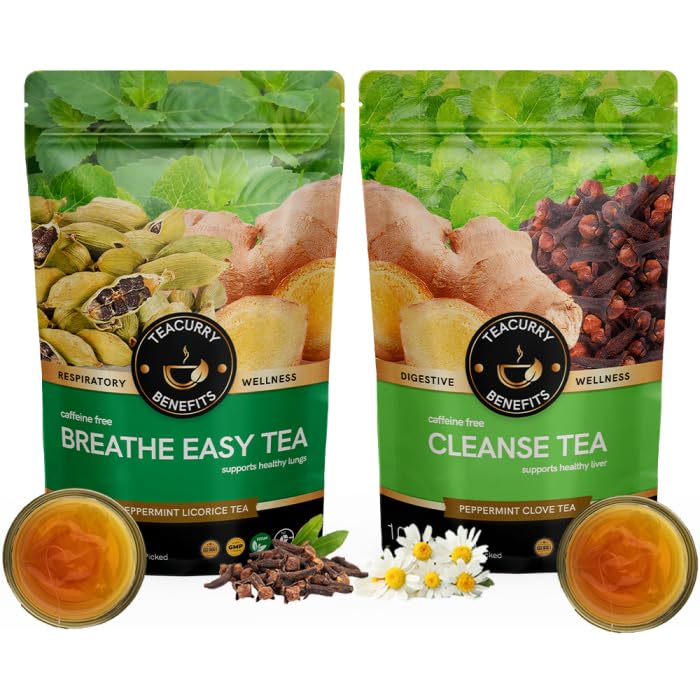 TEACURRY Lung Detox and Liver Detox Tea Combo (2 Months | 200x2 Loose) Support to quit Smoking and Drinking Alcohol
