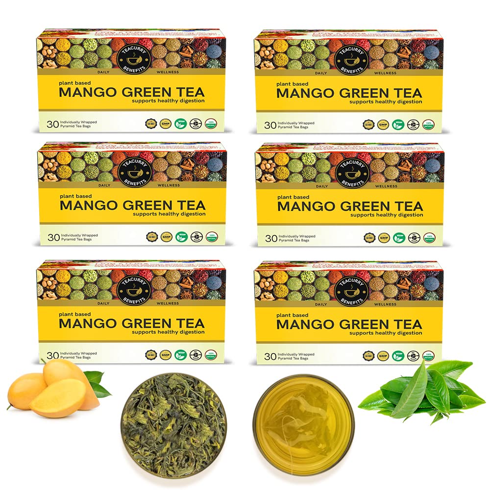 TEACURRY Mango Green Tea (6 Month Pack, 180 Tea Bags) - Organic mango flavor tea | Immune With Added Vitamin-C | Made with Whole Leaf & Natural Ingredients