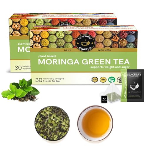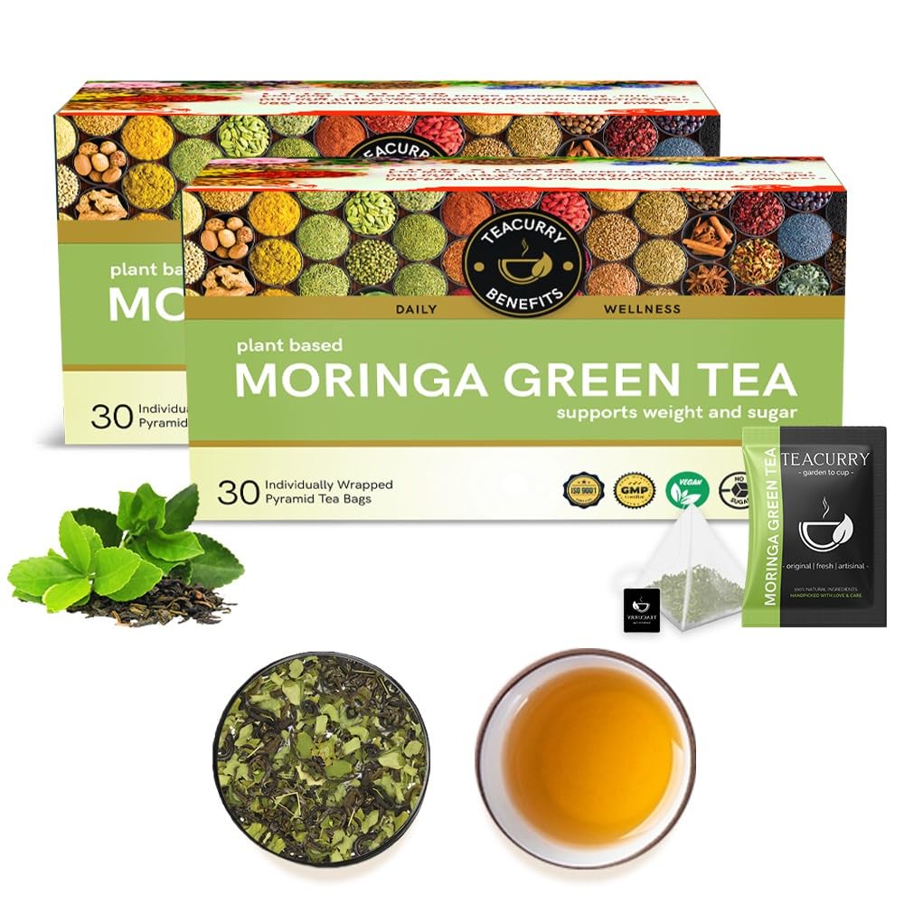 TEACURRY Moringa Green Tea - 60 Tea Bags | Helps With Skin Glow Weight | Moringa Tea Bags | 100% Natural 100 Gm