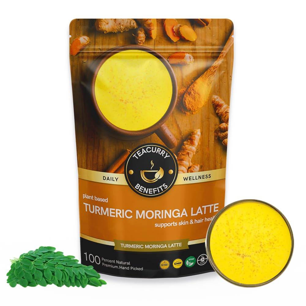 TEACURRY Moringa Turmeric Latte - 120 Sachets of Golden Milk | Turmeric Tea for weight loss & Immunity | Turmeric Latte Care - Helps to Reduce Inflammation, Cholesterol | Golden Milk