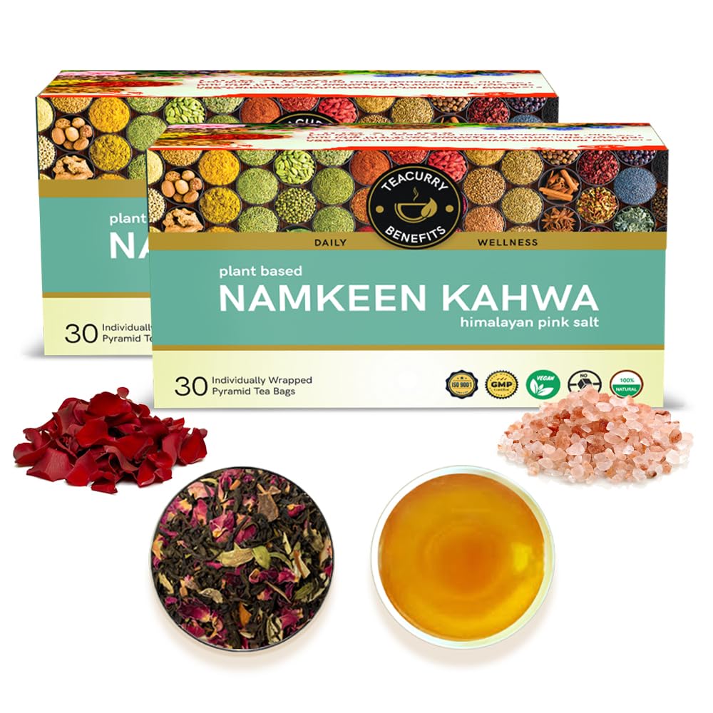 TEACURRY Namkeen Kahwa Kashmiri Himalayan Pink Salt Tea - (60 Tea Bags 2 Month Pack) - Boost Immunity With Minerals | Natural Himalayan Pink Salt