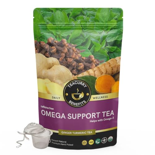 Teacurry Omega Support Tea (2 Month Pack | 200 gram Loose + Infuser) - Powerful Vegan Blend Rich in Omega 3 for Joints Hair Eyes and Brain