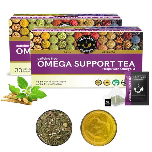 Teacurry Omega Support Tea is a powerful blend of natural herbs and plant-based ingredients. Rich in omega 3 it is designed to support overall wellness including wellness for the eyes brain hair and joints. It is crafted from a unique blend of natural ingredients including Peppermint Fennel Ginger Chia Seeds Flax Seeds Coriander Turmeric Cumin Seeds Oregano Ashwagandha Gotu Kola Lemon Balm Cardamom.