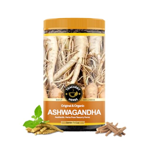 Teacurry Organic Ashwagandha Root (100 Gram) - Boost Internal Wellness and Muscle Strength Balance Level of Sugar & Overall Well Being - Raw Organic Ashwagandha Roots
