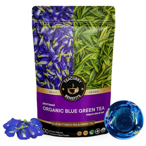Organic Blue Green Tea is a premium blend that delivers a refreshing and wellness enhancing experience. This tea pairs high-quality green tea leaves with vibrant butterfly pea flowers resulting in a visually captivating and nutrient-rich infusion. Its gentle earthy taste and delicate floral notes make it both flavorful and appealing.